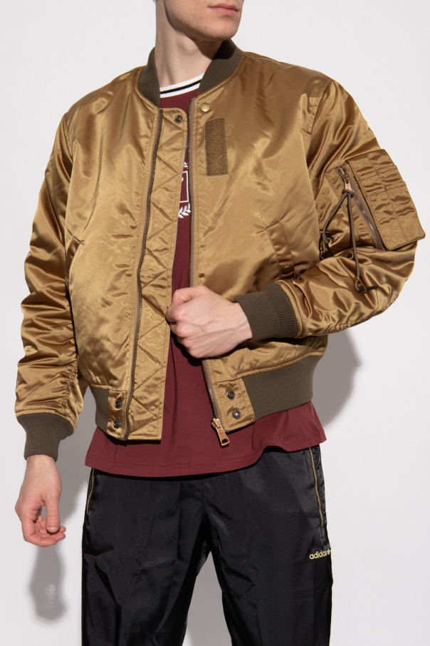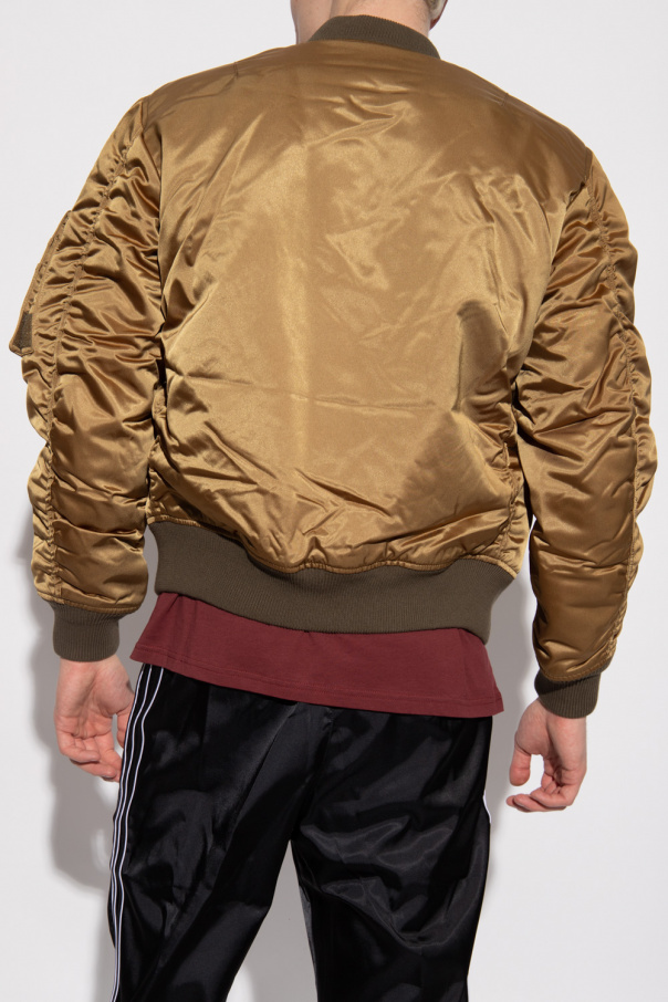 Reversible bomber jacket from Diesel. Fastened with a zip and snaps, this garment features ribbed trims at the collar, hem and cuffs as well as two snap-fastened pockets. One side is green and has multiple sleeve pockets. The other side is blue.