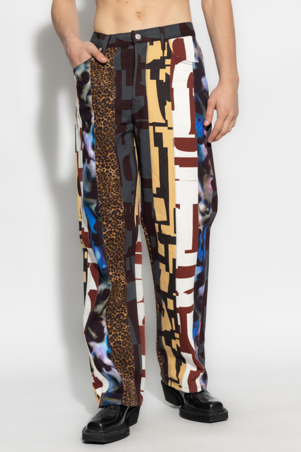 Multicoloured jeans from Dries Van Noten. Embellished with a graphic pattern, this pair falls with wide, straight legs and features button fastenings and classic five pockets.