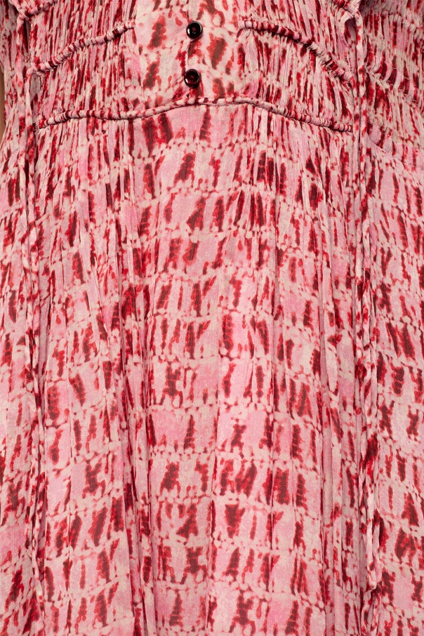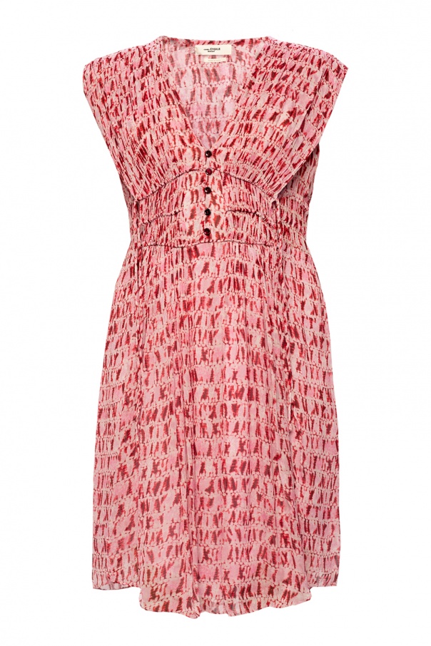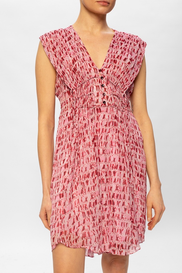 Pink sleeveless dress from Isabel Marant Étoile. Fastened with buttons, this V-neck design features an elastic waist and a tie-dye effect in white and maroon.