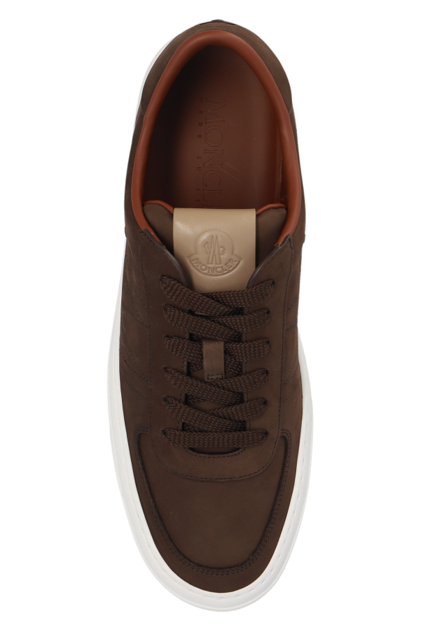 Introducing the \'Monclub\' athletic shoes by Moncler, a testament to the fusion of luxury and sportiness. Crafted from 100% premium leather, these shoes boast a sleek, smooth surface adorned with delicate stitching that forms a geometric pattern along the sides and the collar, evoking a sense of refined elegance. The brown hue of the shoe, complemented by a crisp white rubber sole, encapsulates timeless style, while ensuring optimal grip and comfort. The classic, low-profile silhouette with a rounded toe underscores the shoe\'s versatile appeal, seamlessly blending with casual attire as showcased in subsequent images featuring the model. The color-coordinated laces maintain the aesthetic continuity, and the embossed or patched brand name on the tongue, along with the subtle brown logo on the side, serves as a hallmark of Moncler\'s unparalleled craftsmanship. Why Purchase This Product? Exquisite Craftsmanship: Made entirely of high-quality leather, ensuring durability and a sophisticated appearance. Iconic Design: The geometric pattern and Moncler\'s signature branding add a touch of exclusivity. Unparalleled Comfort: The rubber sole provides excellent traction, making these shoes perfect for everyday wear. Versatile Styling: The classic silhouette and neutral color scheme allow for effortless pairing with various outfits.