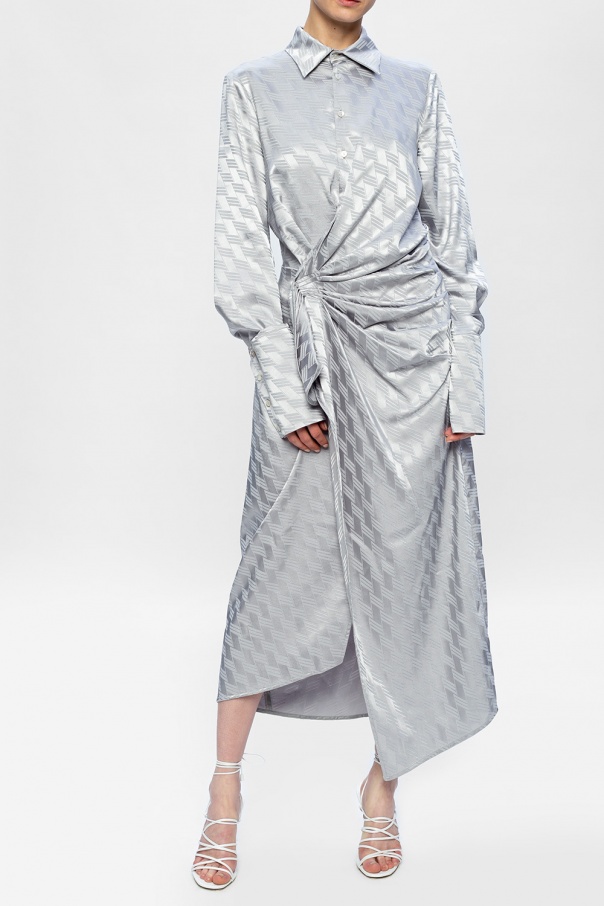 White ‘Fiona’ heeled sandals from The Attico. Crafted from leather, this design features tie fastening at the ankle and a beige leather sole.