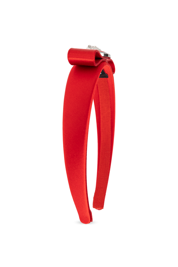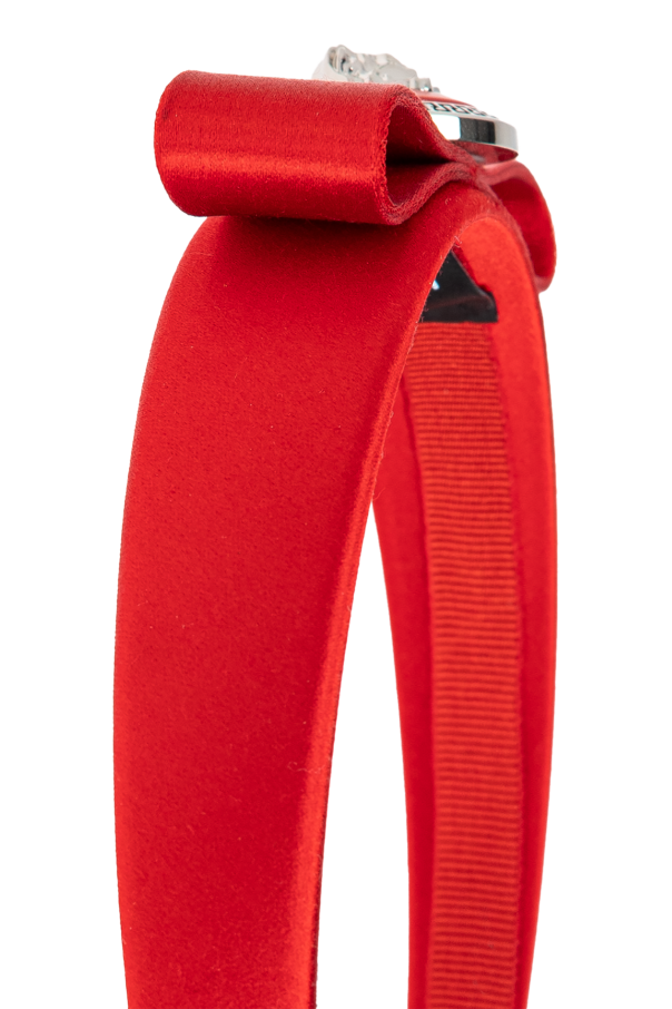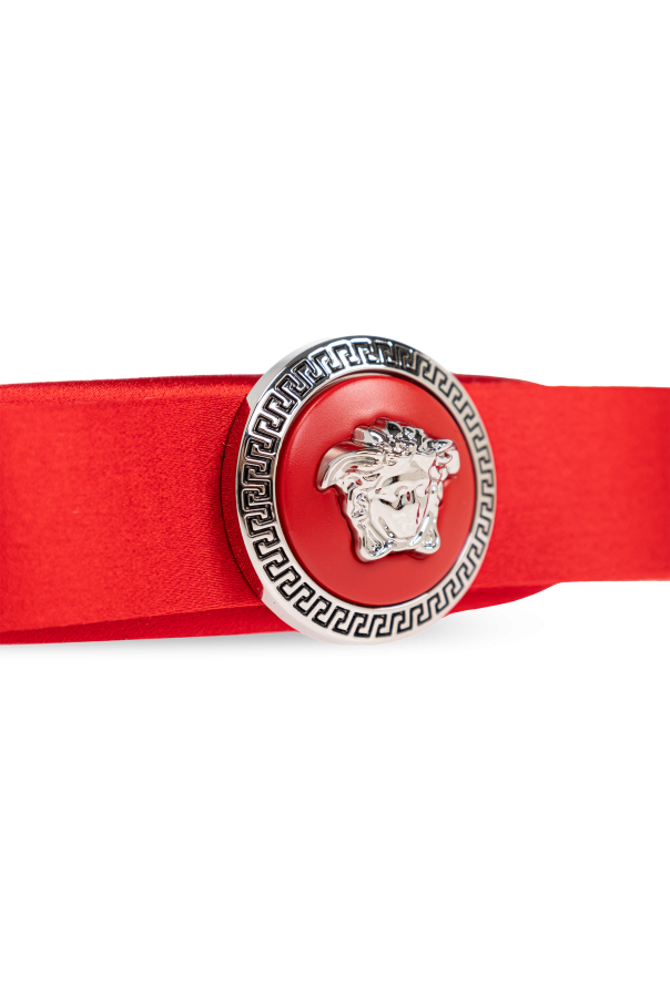 Introducing the Red Satin Headband by the illustrious Versace, a brand synonymous with opulence and innovation. This exquisite accessory, rendered in smooth, lustrous satin, exudes an air of sophistication and elegance. Featuring a classic headband design adorned with a decorative bow, it boasts a distinctive centerpiece—a silver embellishment with the iconic Medusa motif encircled by a Greek pattern. The headband is softly padded on the interior, ensuring unparalleled comfort, making it a perfect fusion of style and practicality. Why Purchase This Product? Crafted from premium satin for a luxurious appearance. Unique design with a silver Medusa motif adds a touch of grandeur. Softly padded interior for enhanced comfort. An iconic piece from the prestigious Versace, known for its blend of tradition and modernity.