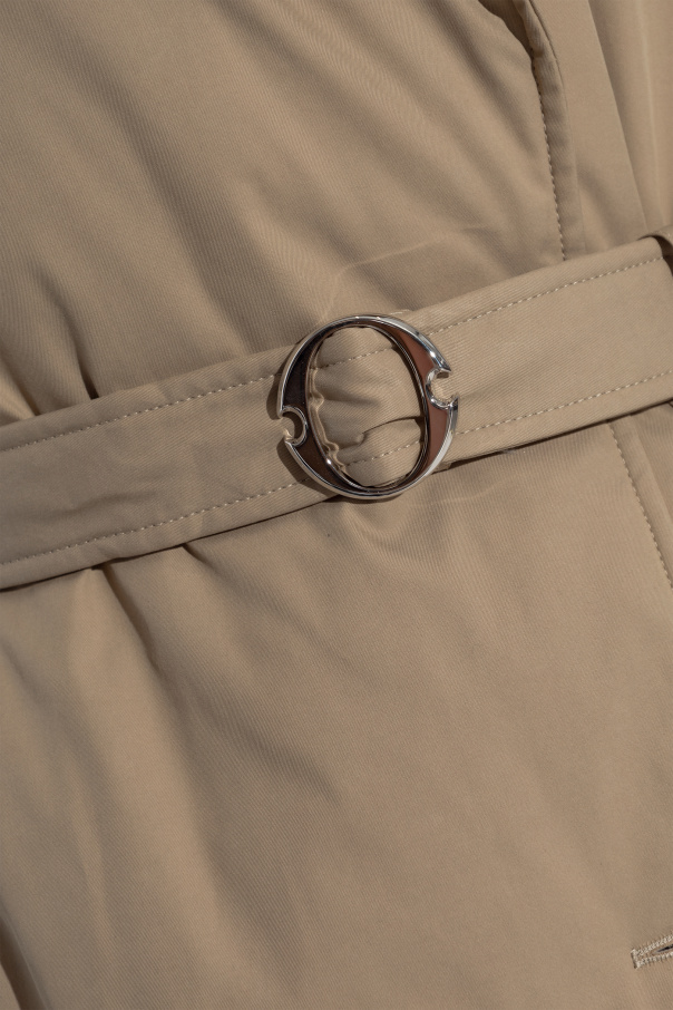 Introducing the Insulated Trench Coat with Belt by Alexander McQueen, a paragon of elegance and function. This exquisite beige trench, a testament to contemporary British tailoring, epitomizes the perfect blend of tradition and modernity. Adorned with a classic cut, this trench extends gracefully below the knees and features a distinctive double-breasted button closure. The belt with a metal buckle cinches the waist, accentuating the silhouette, while the collar can be raised for added wind protection. Crafted from a robust, likely waterproof fabric, this coat is not only an aesthetic delight but also a practical ally against inclement weather, ensuring thermal comfort with its insulated design. The exterior comprises a blend of cotton and polyester, while the interior is lined with cotton and cupro, with polyester filling. Details such as adjustable cuff buttons and epaulettes imbue a subtle military flair, while clean, minimalist lines highlight its sophisticated style. Complete with two pockets, this trench is a versatile staple for cooler days. Why Choose This Product? Exquisite design by the iconic Alexander McQueen. Classic, versatile beige color. Functional features including adjustable cuffs and epaulettes. Durable and likely waterproof fabric. Thermal insulation for enhanced comfort.