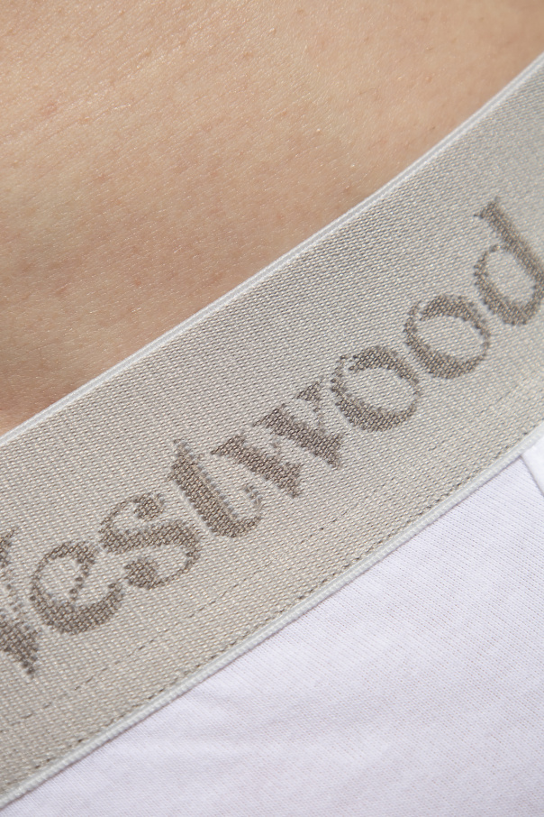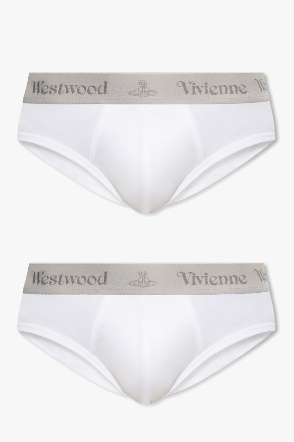 2-pack of white briefs from Vivienne Westwood. Made of organic cotton, each pair has an elastic logo-embroidered waistband.