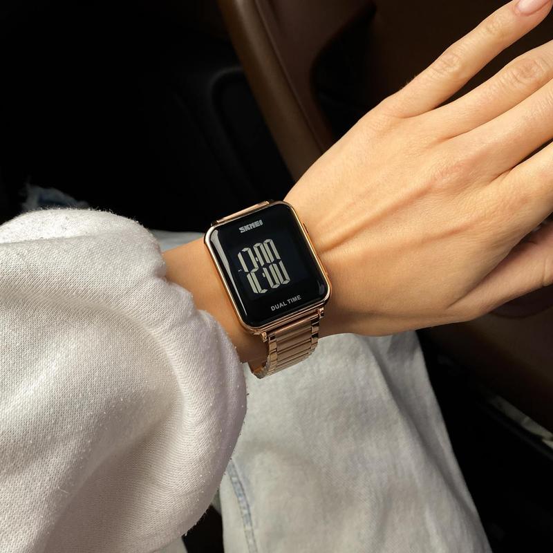 Материал ремешка:Сталь ,Пол:Для женщин ,Стиль:Классический ,Механизм:Кварцевый ,Тип крепления:Браслет ,Циферблат:Электронный ,Водонепроницаемость:До 30 м (дождь, умивание) ,Вид:Наручные ,Функции:Будильник , Календарь , Секундомер ,Форма корпуса:Квадратная , - Shipping