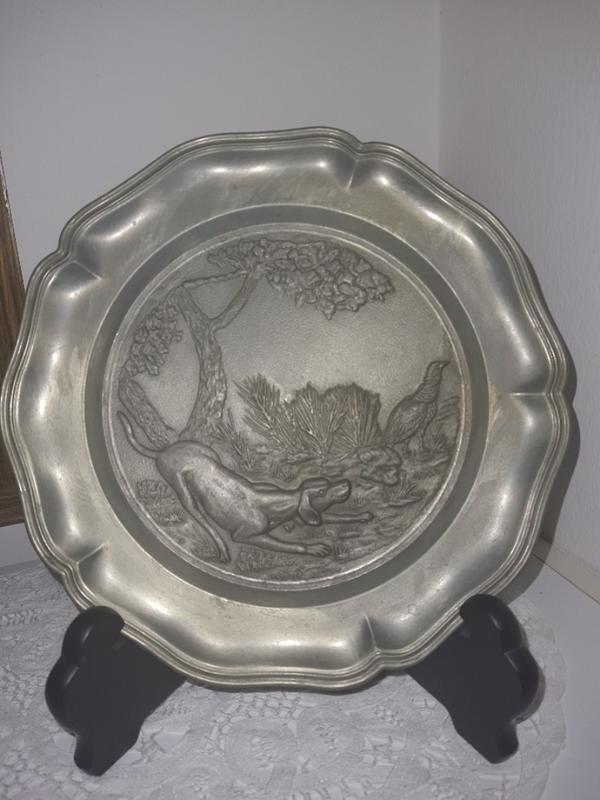 Тарелка настенная, коллекционная. Олово. Клеймо. Германия. Диаметр: 21см.