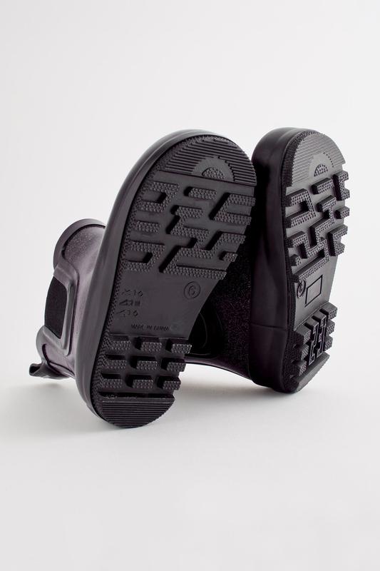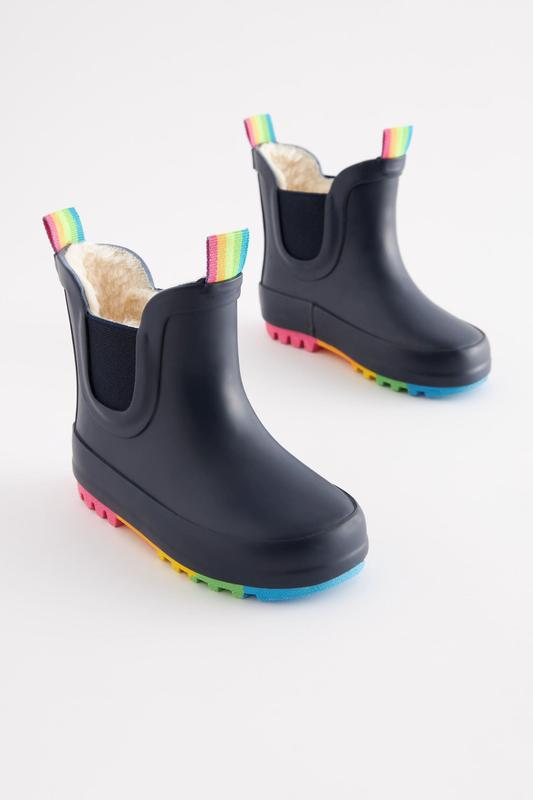 Гумові чоботи ідеально підходять для ігор під дощем та плескання в калюжах. Мають форму челсі з еластичними боковими панелями, водонепроникним верхом, зручною теплою хутряною підкладкою та міцною гумовою підошвою, стійкою до ковзання.