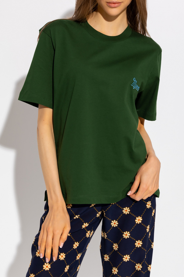 Green, purple and light beige crewneck T-shirt three-pack from Marni. Crafted from cotton, each item features short sleeves, an elasticated collar and logo embroidery on the front.