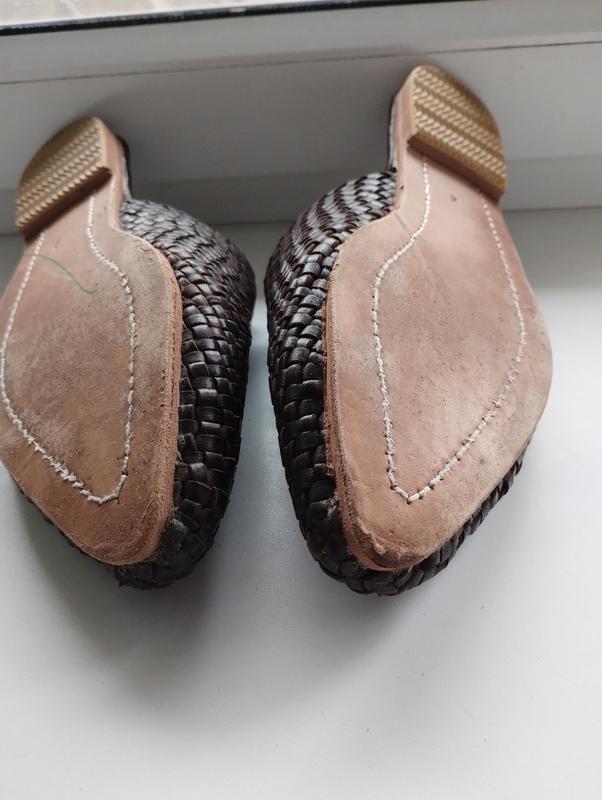 Верх плетена нат шкіра,устілка нат замша,підошва нат шкіра.м'які,легкі,зручні,по прийнятній ціні,вартість нових 55 фунтів.Довж уст від краю до краю майже 27 см ,шир 8.