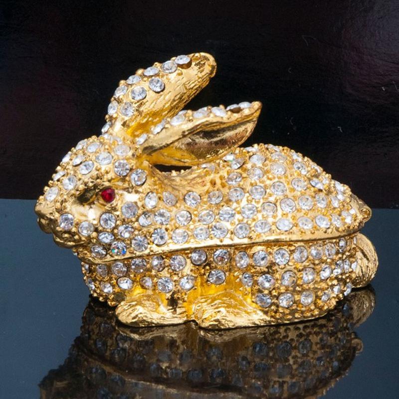 Шкатулка Кролик сделана из металла, покрытого эмалью, украшена множеством