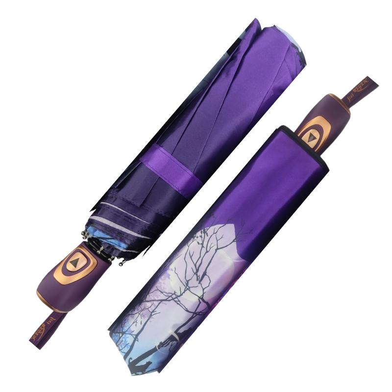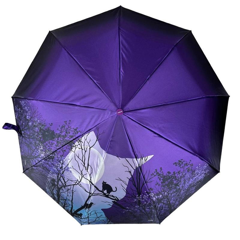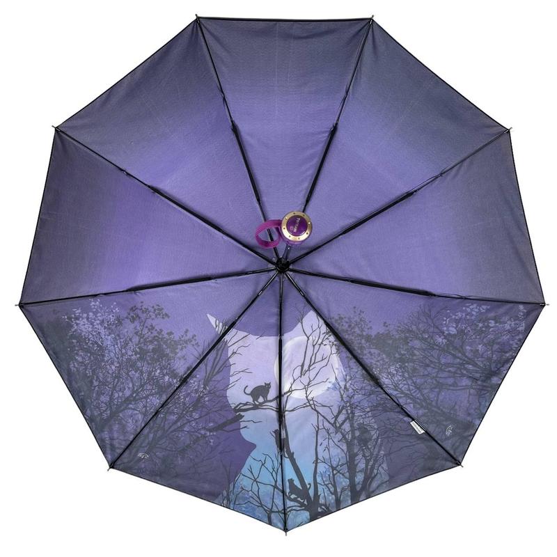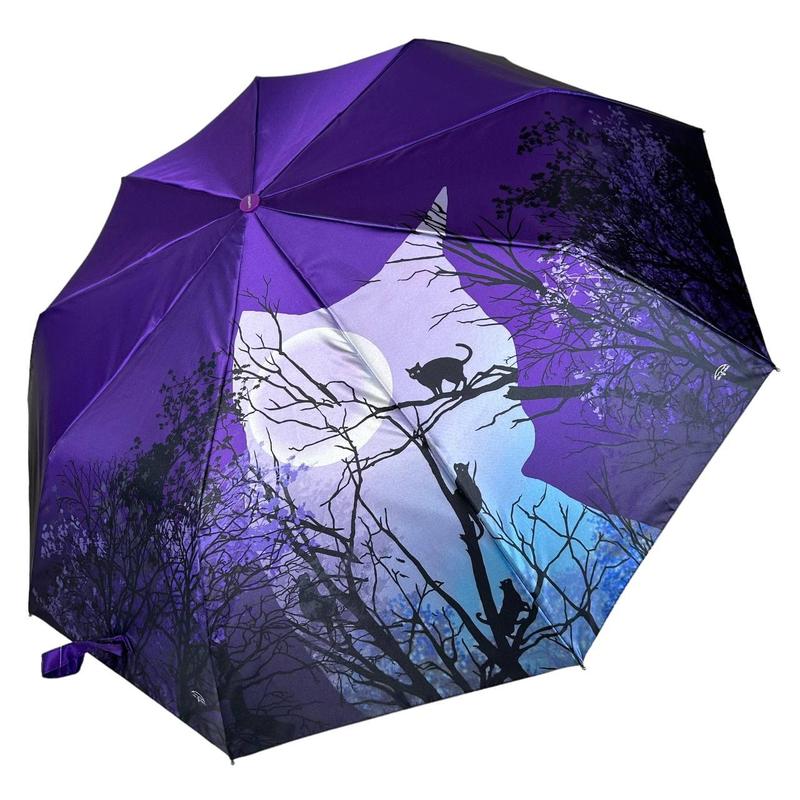 Женский зонт полуавтомат с изображением мистической черной кошки в ночном