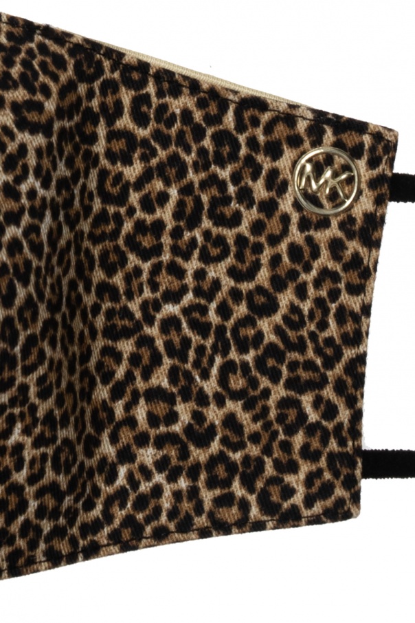 Brown and beige mask from Michael Michael Kors. Made of cotton, this design is decorated with a black animal pattern and a logo appliqué.