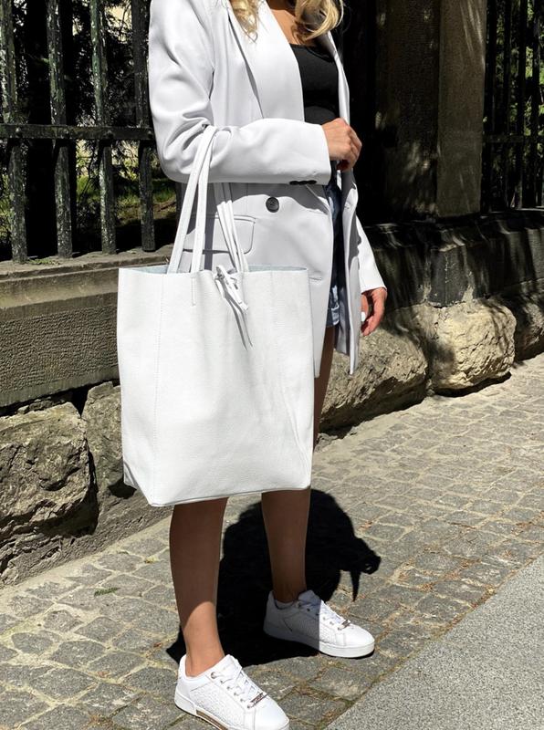 Шоппер женская сумка кожаная с мягкой которой натуральной кожи Производитель Италия Материал натуральная кожа Цвета: - белый; - черный; - светлый беж; - темный беж. Размер высота 36 см, ширина 28 см., глубина 14 см.
