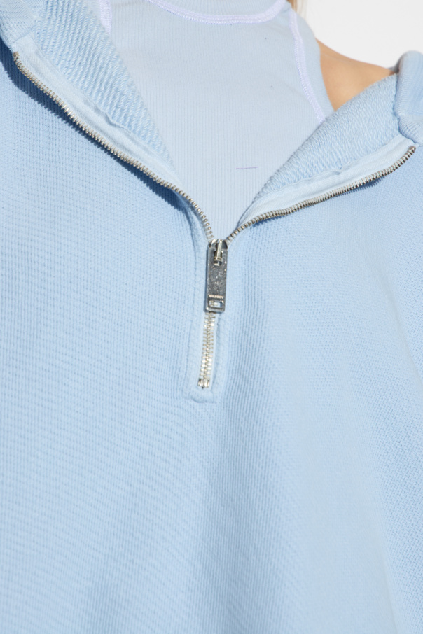 Light blue sleeveless sweatshirt from HALFBOY. Made of cotton, this oversize design features a zip detail, hood with a white logo embroidery, padded shoulders and side slits.