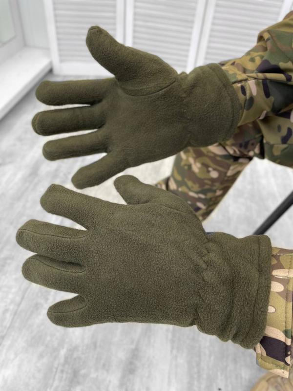 Флисовые двойные перчатки Олива. Теплые зимние рукавицы мужские флисовые.