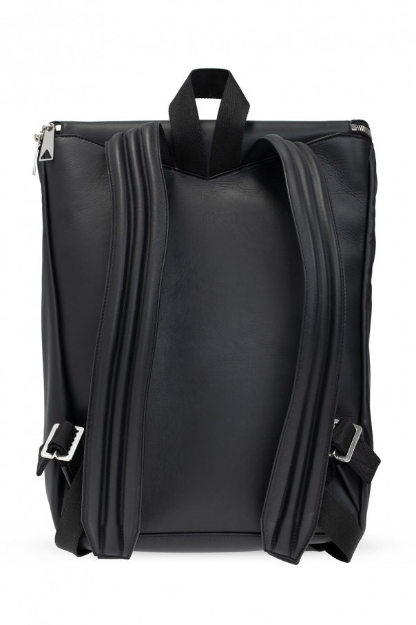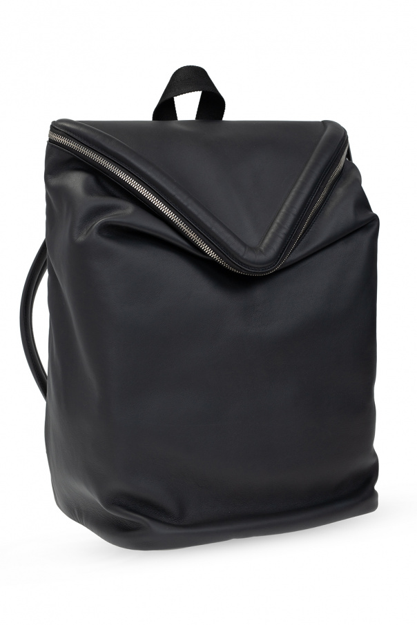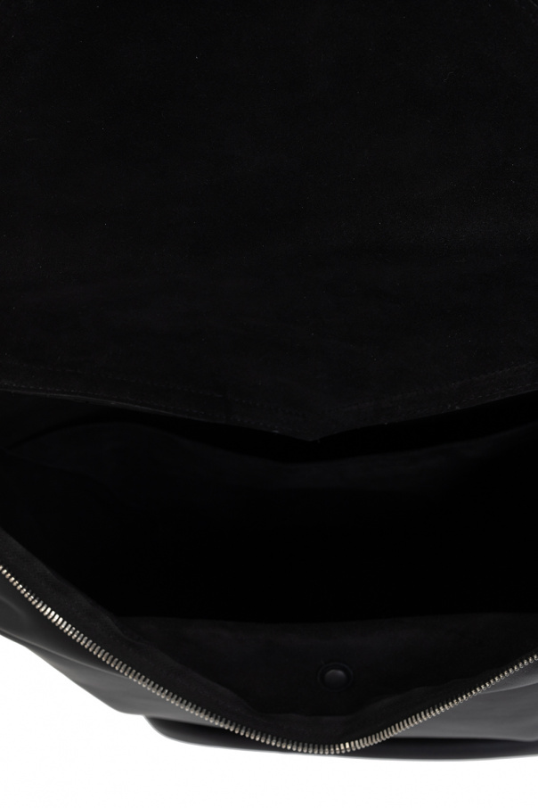 Black backpack from Bottega Veneta. Made of leather, this design features a zip and snap fastening, half-round handle, adjustable shoulder straps, silver-tone metal hardware and one internal compartment with one slip pocket.