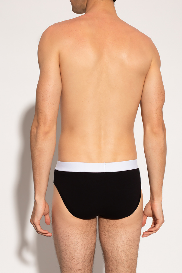 Black and white briefs from VETEMENTS. Crafted from stretch cotton, they feature a white waistband with a black logo.