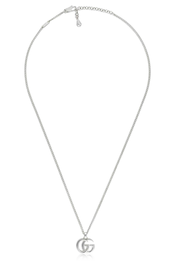 Introducing the Silver Necklace with Logo Pendant, an exquisite creation by the renowned designer, Gucci. This masterpiece is a testament to the brand\'s commitment to luxury and innovation, brought to life by the visionary creative director, Alessandro Michele. Crafted entirely from sterling silver, this necklace boasts a delicate chain that exudes elegance and sophistication. The pendant features the iconic double \"G\" emblem, a hallmark of the brand\'s distinctive style. The necklace is adorned with a classic lobster clasp, ensuring both comfort and security. This piece is the epitome of modern luxury, effortlessly transitioning from everyday wear to special occasions. Revel in the unparalleled craftsmanship and style that are synonymous with Gucci, a proud member of the prestigious Kering luxury group. Why Choose This Product? Iconic design with the distinctive double \"G\" logo. Made from premium sterling silver for a luxurious finish. Adjustable lobster clasp for a perfect fit. Timeless elegance suitable for any occasion. Part of Gucci\'s innovative and expressive collection.