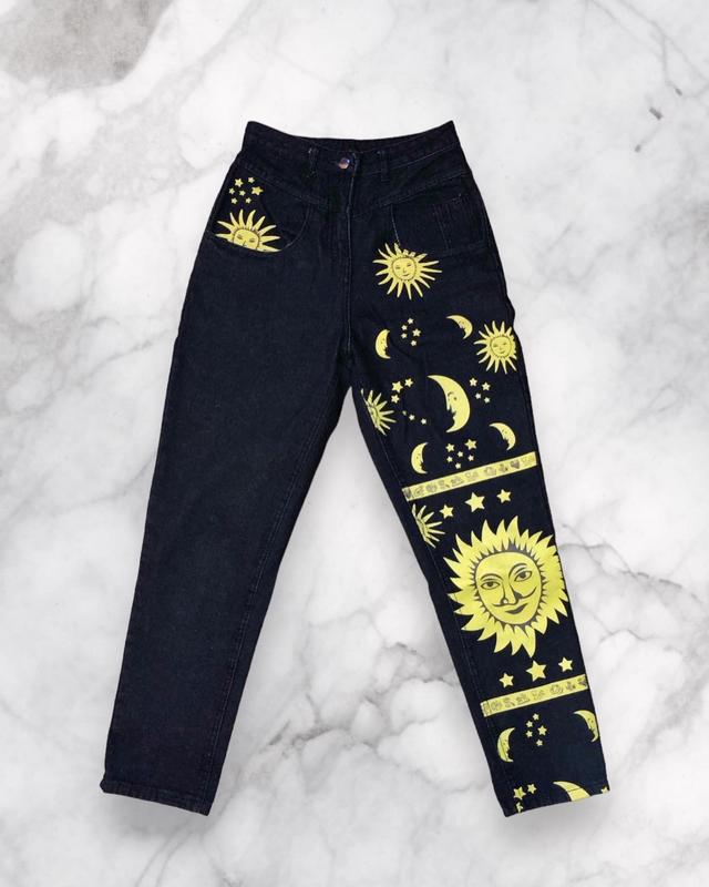 Джинсы с красивыми желтыми вставками месяца, звезды🌜⭐️🌞