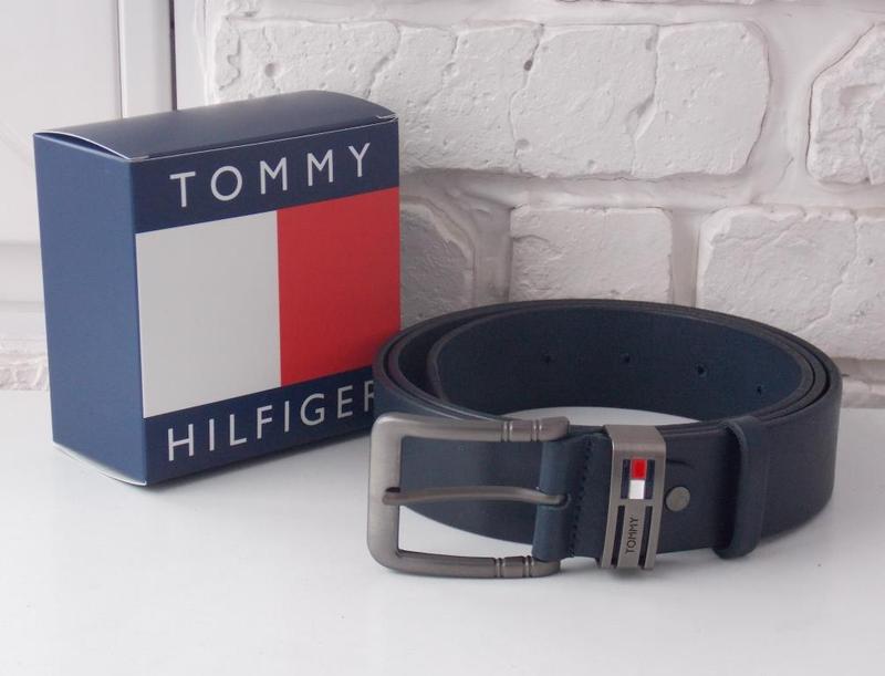 Мужской кожаный синий ремень. Идет в подарочной упаковке.