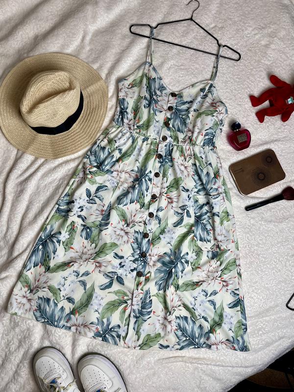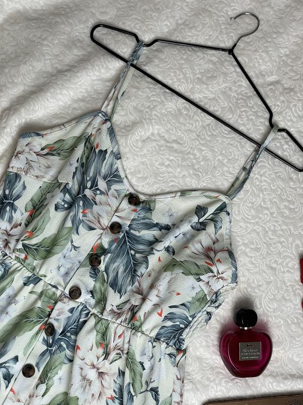 Сукня бюстьє А-силуету з кримплену середньої щільності в квітковий тропічний принт 🌺