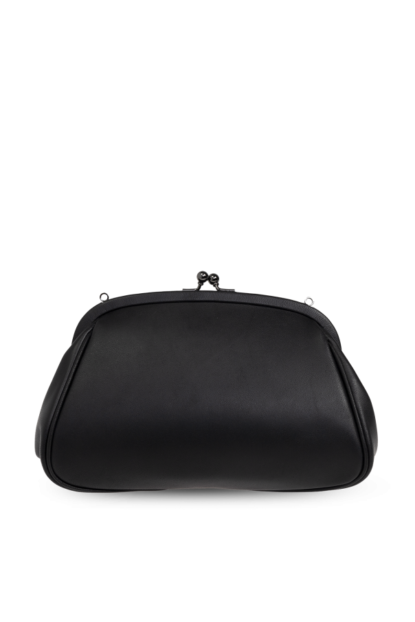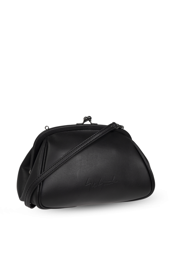 Introducing the Discord Shoulder Bag from the exclusive fashion collection by Discord Yohji Yamamoto. This exquisite black bag is a testament to the brand\'s commitment to minimalistic elegance and avant-garde design. Crafted from smooth cow leather, it boasts a sophisticated rounded silhouette adorned with a subtle designer logo on the front. The bag features a slender, adjustable shoulder strap, ensuring comfort and versatility. Its distinguished kiss-lock closure elevates the bag\'s refined aesthetic, while the interior, lined with dark material, includes a small pocket for your essentials. This unisex accessory is perfectly sized for daily outings, embodying the brand\'s unique fusion of deconstruction and Japanese street culture. Why Choose This Product? Exquisite design by Discord Yohji Yamamoto Made from premium cow leather Adjustable strap for personalized comfort Elegant kiss-lock closure Compact and versatile for daily use