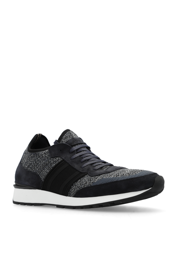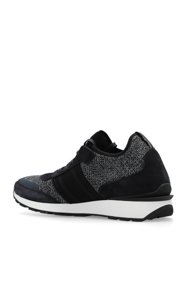 Navy blue, grey and black sneakers from Brioni. Crafted from fabric and suede, this lace-up model sits on a black and white rubber sole and showcases the brand\'s logo. Comes with swappable laces.