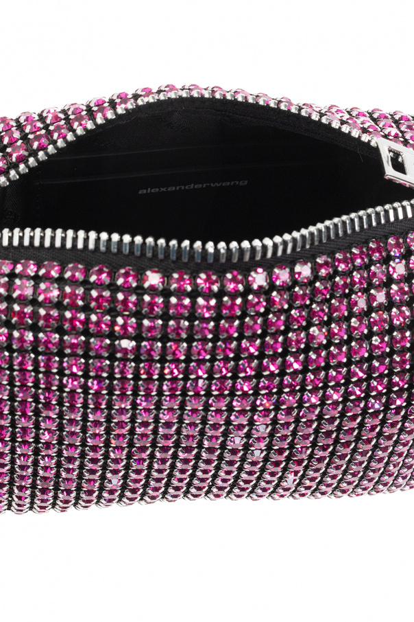 Black, pink and silver-tone ‘Heiress Medium’ handbag from Alexander Wang. Crafted from mesh accentuated with sparkling crystals, this design features a zip fastening, a half-round handle printed with a white logo, silver-tone metal hardware and one internal compartment with a slip pocket.