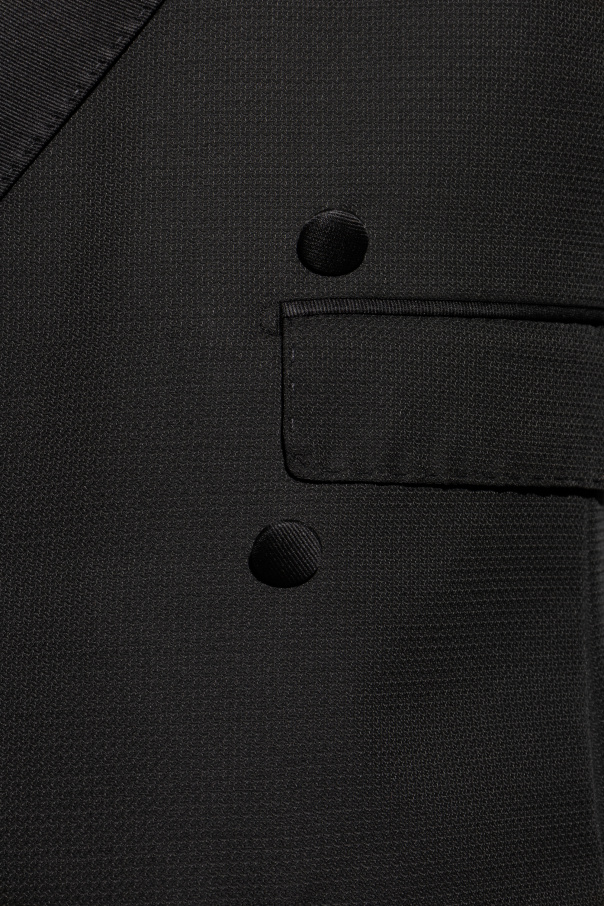 Introducing the Double-Breasted Blazer by the illustrious Dolce & Gabbana, a name synonymous with unparalleled elegance and luxury. This exquisite piece, a testament to the brand\'s refined craftsmanship, exudes sophistication with its classic, tailored silhouette and commanding double-breasted design. Expertly crafted from a distinguished blend of wool and polyester, the blazer features a high-quality fabric with a subtle texture, enhancing its luxurious appeal. The striking wide lapels and fabric-covered buttons add to its cohesive and elegant design, while the front flap pockets offer both utility and style. The blazer\'s timeless black hue ensures its versatility, making it an impeccable choice for formal occasions or as a staple in a discerning business wardrobe. Why Choose This Product? Classic double-breasted design with wide lapels. Crafted from a luxurious wool blend. Fabric-covered buttons for a unified look. Versatile black color suitable for various formal settings. Renowned Dolce & Gabbana craftsmanship.