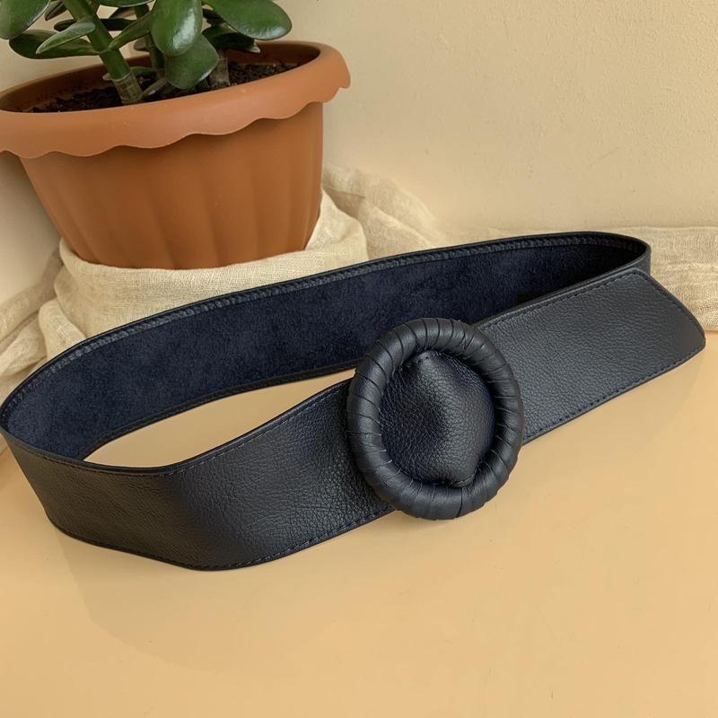 🫐🫐🫐Красивый широкий кожаный ремень для вашего образа, Италия 🫐🫐🫐Качественный, мягкая кожа, цвет - темно синий 🫐🫐🫐 Ширина ременя 65мм, довжина полотна ременя 104см. 🫐🫐🫐удобный в обращении и красиво ложится по фигуре, так как застегивается без язычка, диапазон размеров значительно больше, наиболее гармонично будет на размер 90см, максимально 97см и меньше без проблем. 🫐🫐🫐Состояние отличное, без дефектов и нюансов, выполнено в Италии, желаемое не может прочитать название бренда.