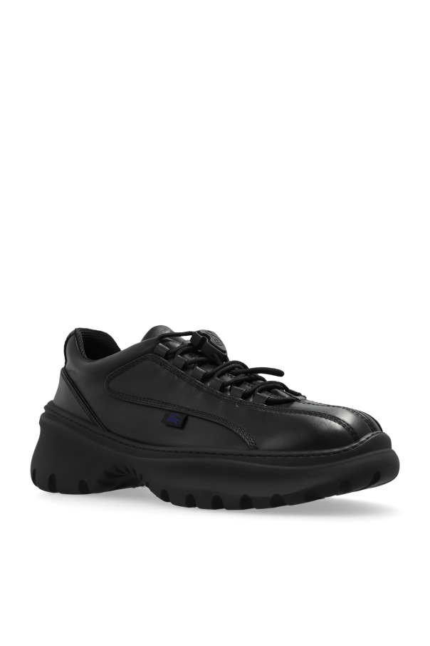Discover the epitome of understated luxury with the Burberry Low-Top Sneakers. These exclusive shoes, crafted by the renowned British designer, encapsulate a blend of timeless elegance and modern sophistication. The sneakers feature a classic low-top silhouette, enhanced by minimalist lines and precise stitching. The upper, made from premium black leather, exudes elegance and durability. The substantial rubber sole, with its pronounced tread, ensures both superior grip and long-lasting wear. Delicate details, such as the subtle designer logo on the sides and the embossed logo on the tongue, add a touch of refinement. The black laces seamlessly complement the overall aesthetic, maintaining a cohesive and sleek appearance. Designed for ultimate comfort, the sneakers boast a padded collar and tongue, as well as a soft interior lining, providing an unparalleled wearing experience. The dominant black color offers versatility, making these shoes a perfect match for any ensemble. Why Choose These Sneakers? Timeless low-top design Crafted from high-quality black leather Durable rubber sole with excellent traction Subtle yet distinctive designer logos Enhanced comfort with padded collar and tongue Versatile and easy to style