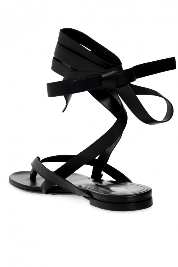 Black ‘Beth’ sandals from The Attico. Made of leather, this model sits on a black leather sole and features a distinctive tie closure at the ankle.