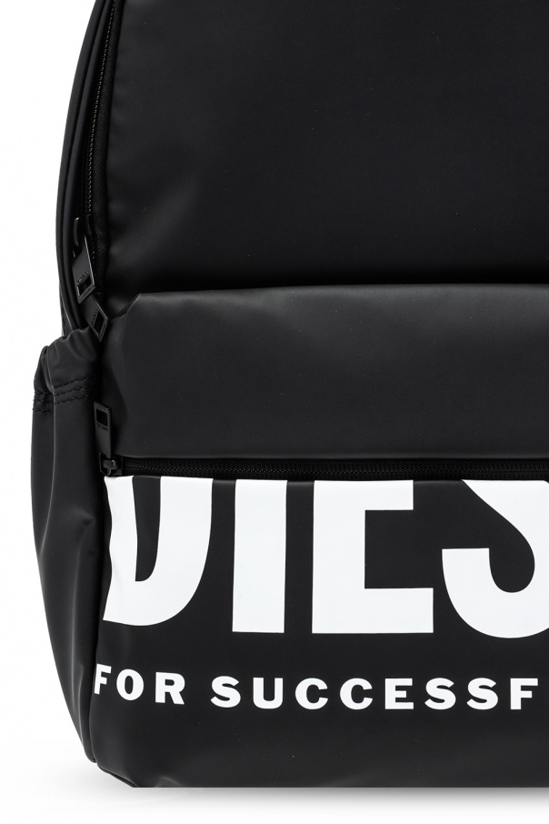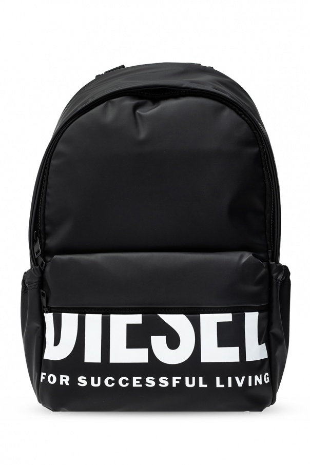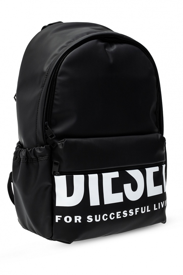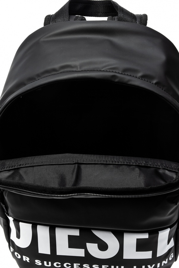 Black ‘F-Bold Back FL III’ backpack from Diesel. Printed with white Diesel branding, this style fastens via two-way zip closure and employs an external zip pocket on the front, two side pockets, zip detail on the back, a half-round handle, adjustable shoulder straps and interior with one compartment, one zip pocket and three slip pockets.