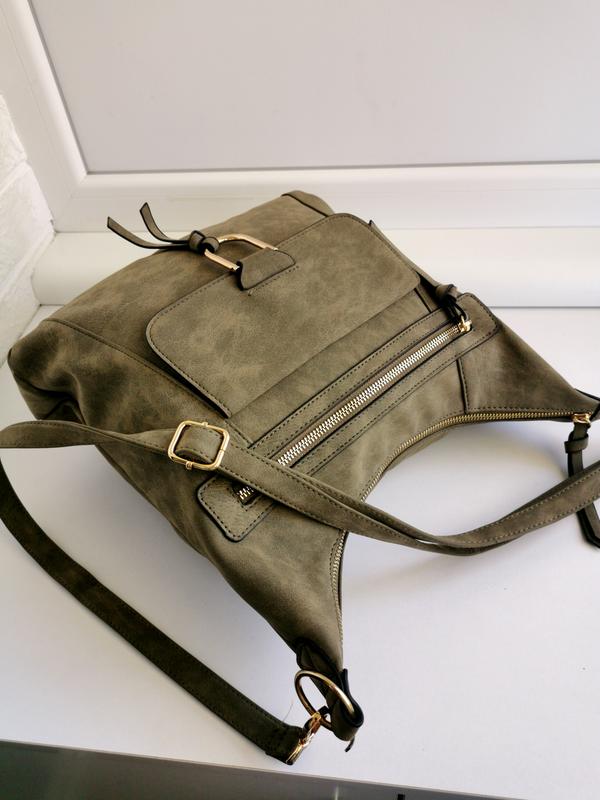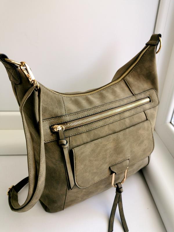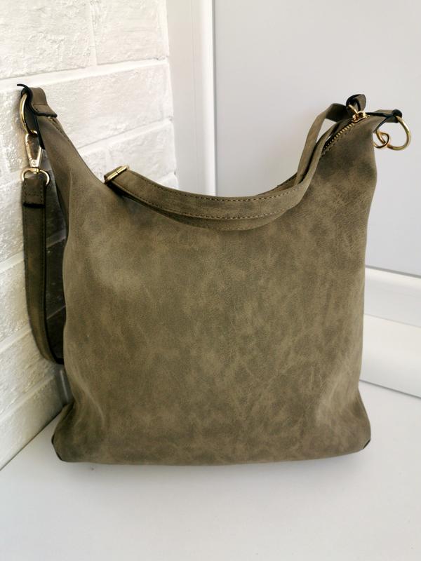 Большая красивая женская сумка кросс-боди TU. выполнена из искусственного, качественного нубука цвета хаки. Сумка легкая. удобная и очень вместительная. Снаружи большой карман на молнии. Застегивается на молнию. Ремень регулируется по длине пряжкой. Внутри есть подкладка и карманы для мелочей. Стильная повседневная сумка для любой модницы. В подарок к сумке красивый кошелек.