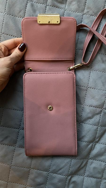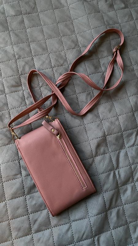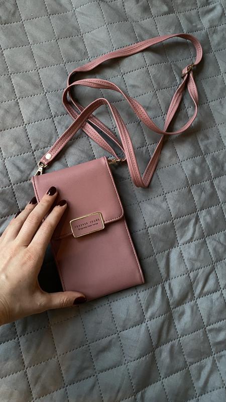 Гарна маленька рожева сумка - клатч або сумка-гаманець з двома кишенями, також є відділ для карточок. Ремінець регулюється по розміру.