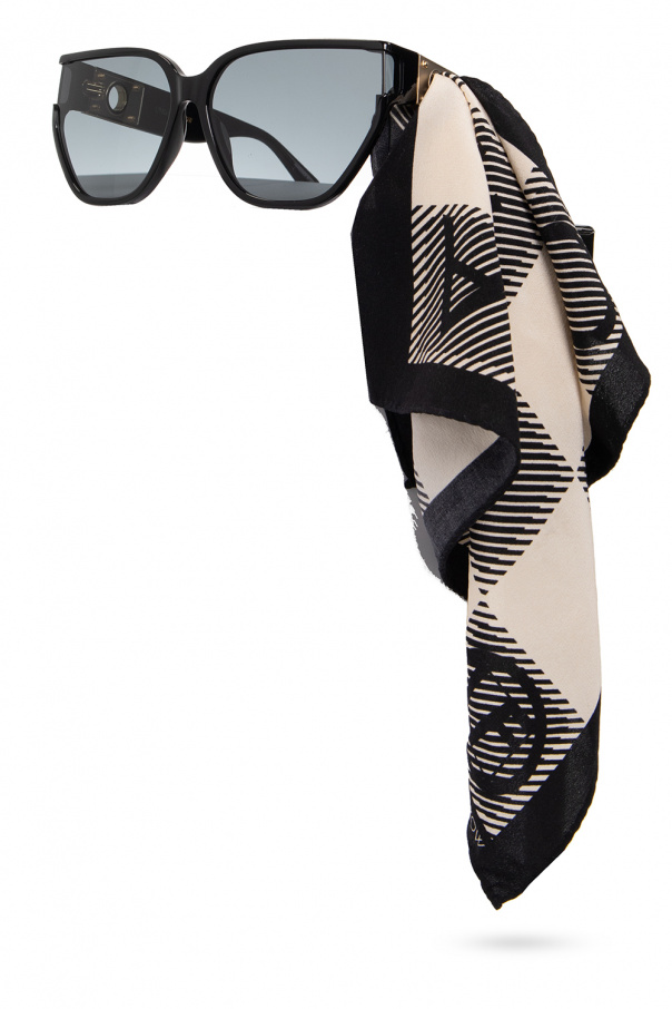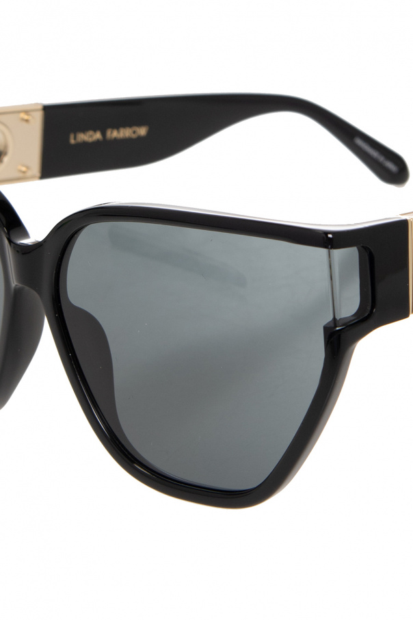 Black ‘Sabine’ sunglasses from Linda Farrow. Handmade in Japan, this pair features decorative gold-tone eyelets engraved with a logo and grey certificated lenses with 100% UVA/UVB protection. Case included.