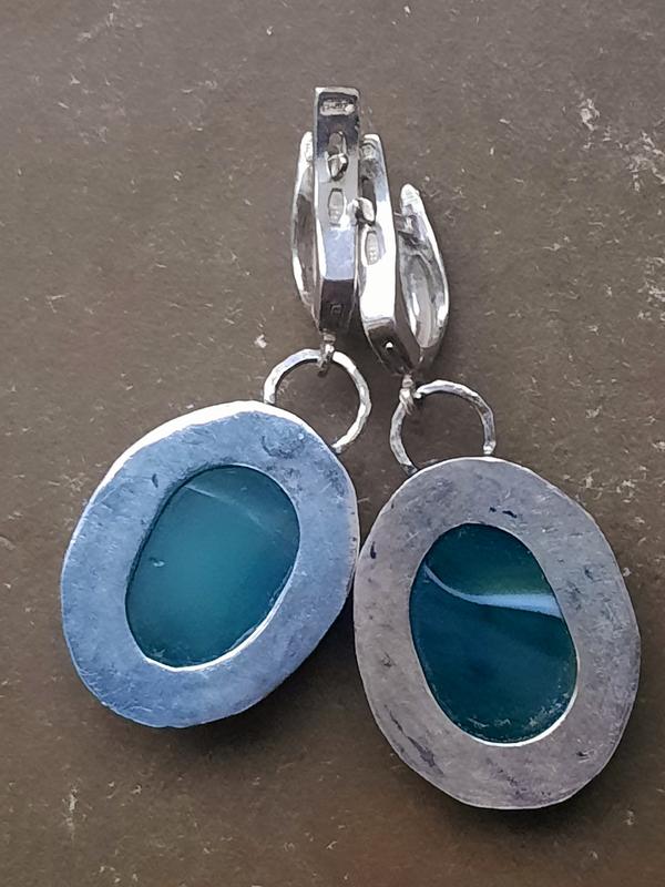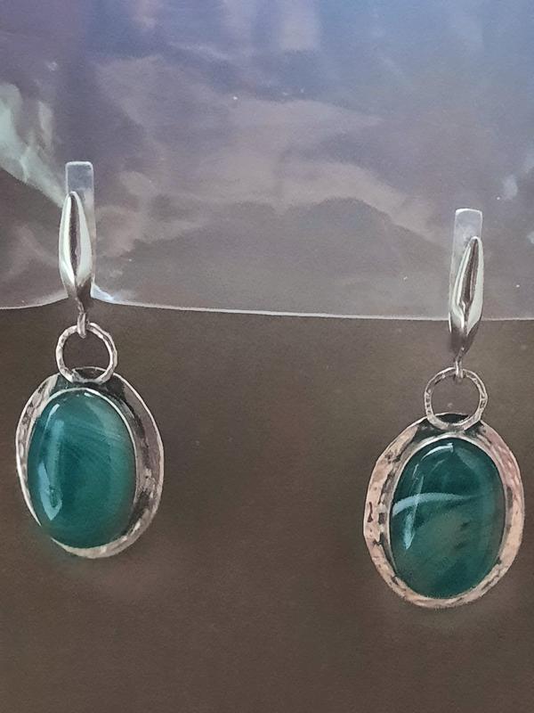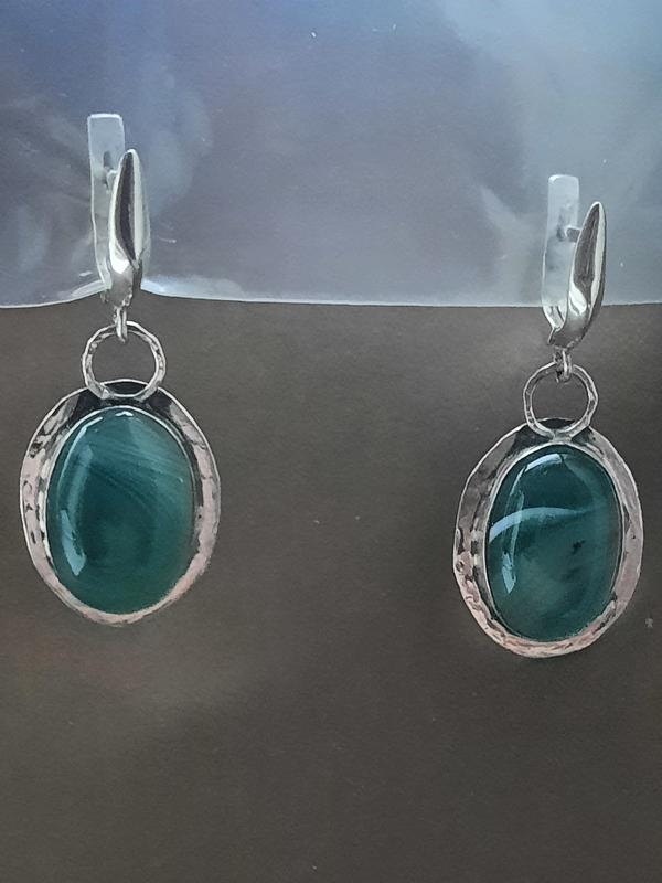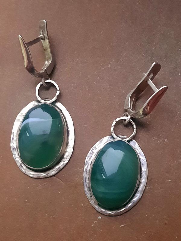 Дизайнерські ексклюзивні срібні сережки з природнім зеленим агатом