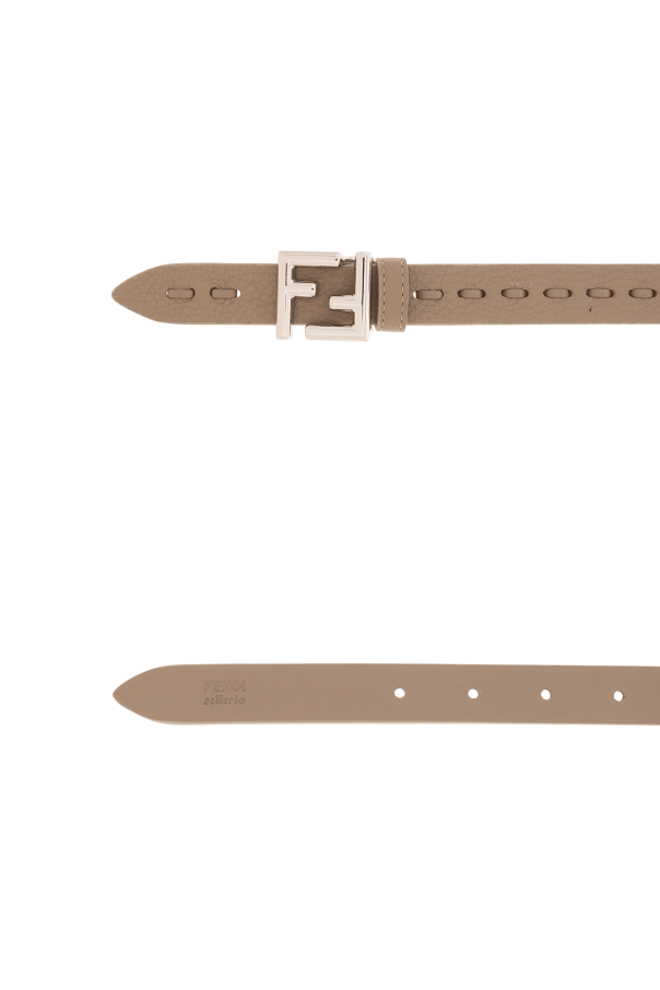 Greyish brown reversible belt from Fendi. Made of calf leather with a grained side and a smooth side, this item fastens with a silver-tone logo buckle and is decorated with stitches.
