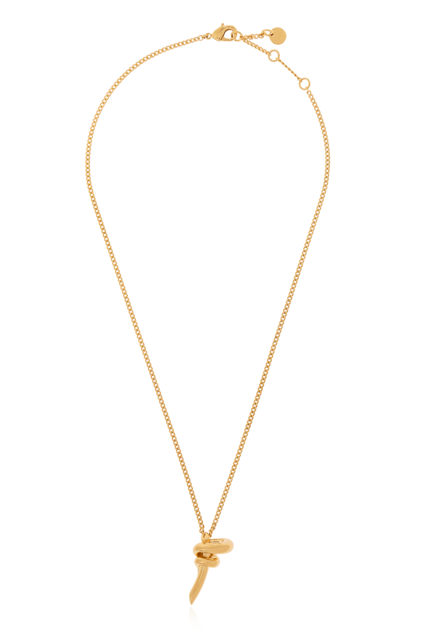 Gold-tone ‘Filo’ necklace from Fendi. Made of brass, this design features an adjustable lobster clasp closure and an interlaced letter F charm that echoes sewing thread.