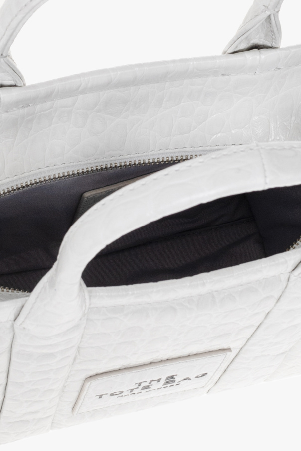 White ‘The Tote Mini’ shoulder bag from Marc Jacobs. Crafted from leather with a crocodile skin effect, this model fastens with a zip and is decorated with a patch with a black logo print on the front. It is complete with two half-round handles, detachable and adjustable shoulder strap, silver-tone metal hardware and one internal compartment with one slip pocket.