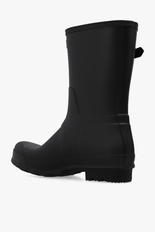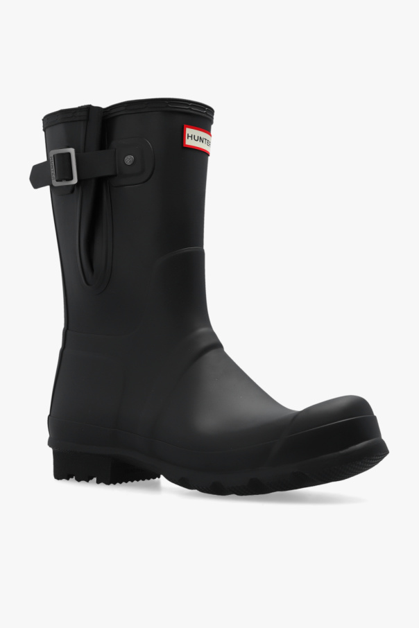 Black ‘Original Side Adjustable Short’ rain boots from Hunter. Handcrafted from vulcanized natural rubber with a matte finish, this pair features a logo detail, adjustable buckle strap to the side and rubber outsole with the signature Hunter Original tread.