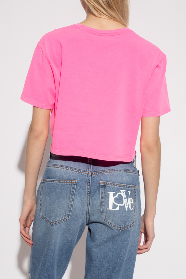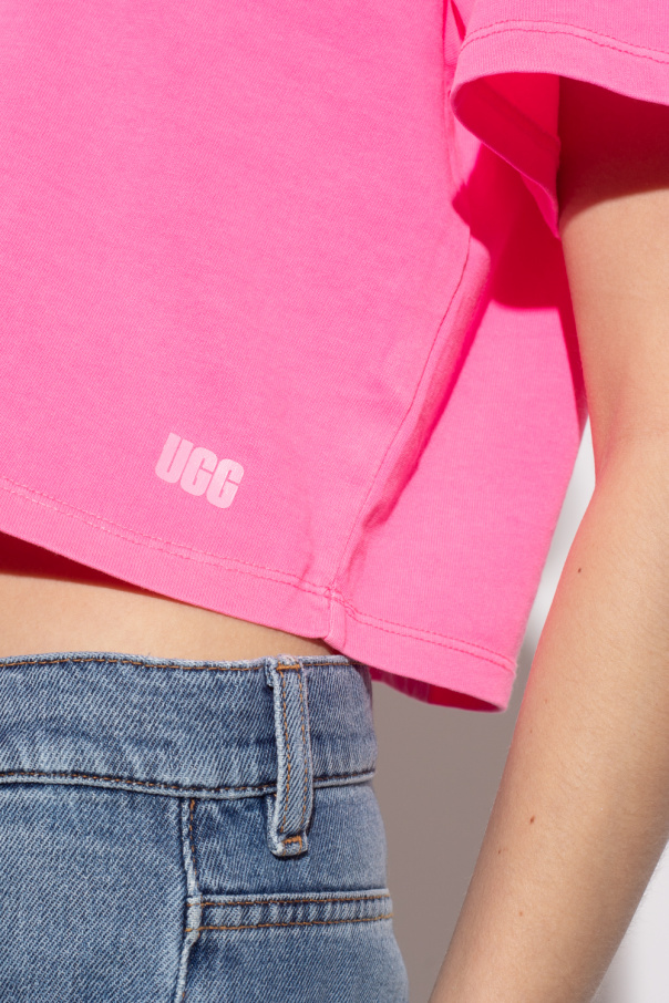 Neon pink crewneck ‘Tana’ T-shirt from UGG. Crafted from organic cotton with an oversize fit, this style features short sleeves and a printed logo.