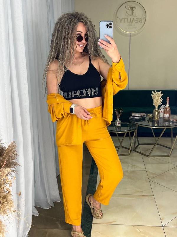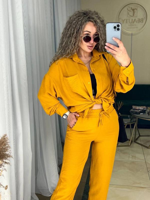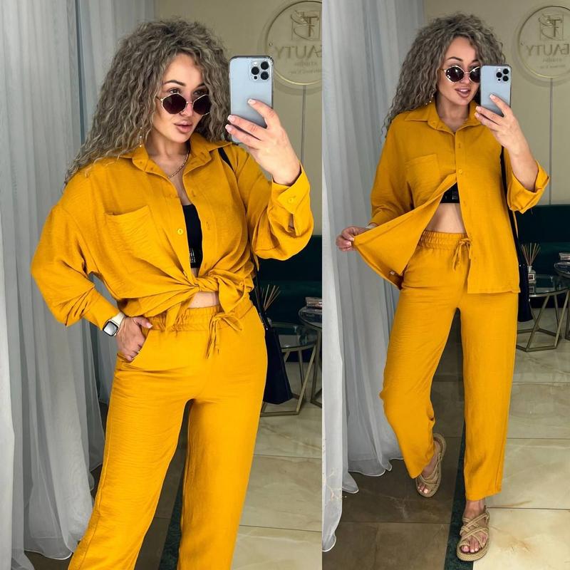 ▫️ Размер: 42-44, 44-46Легкий и комфортный костюм на любой случай. Брюки укороченные, высокая посадка есть карманы. Современная модель, отличное исполнение.