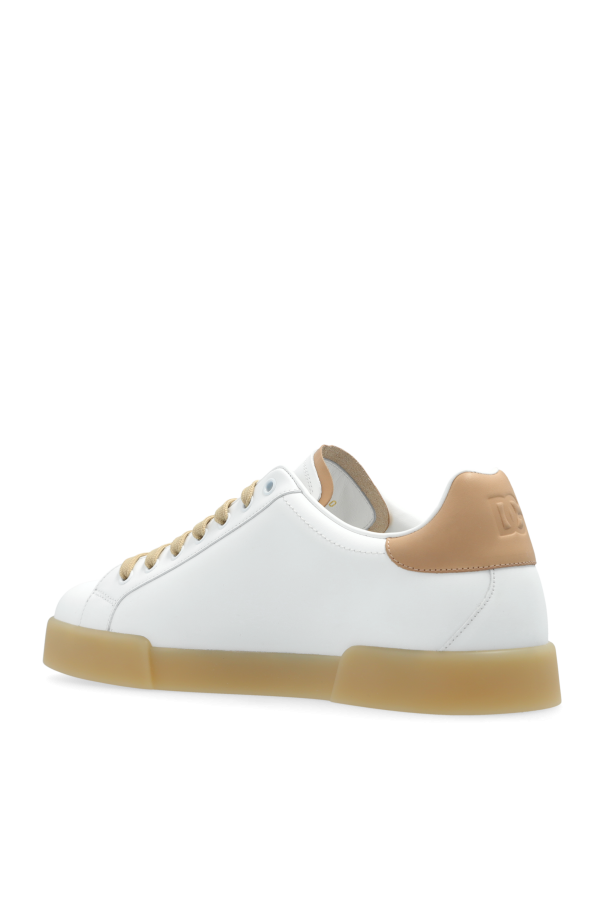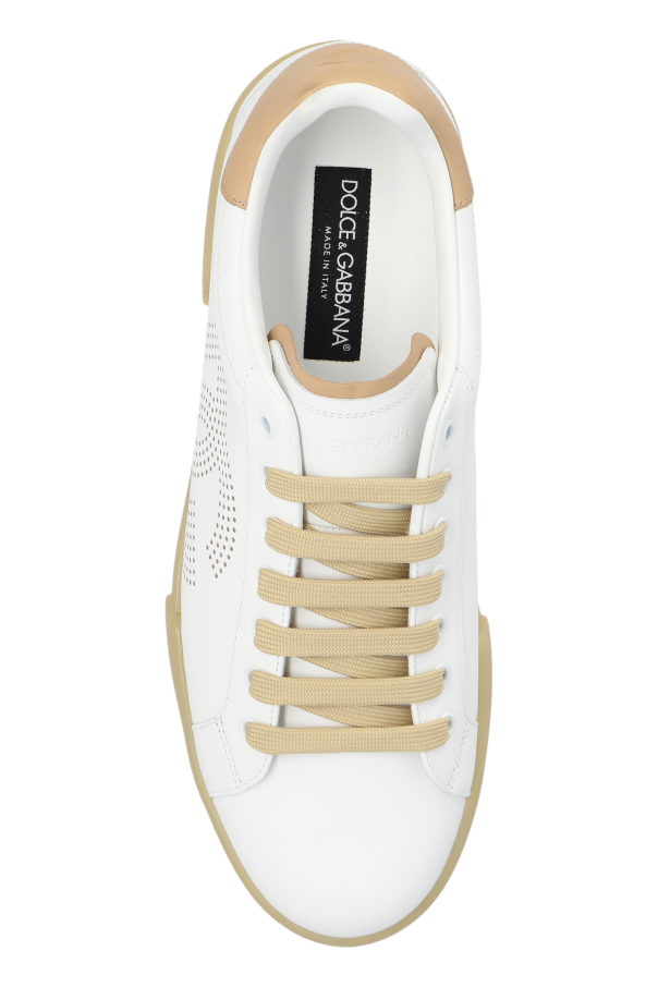 Introducing the Dolce & Gabbana Logo Sneakers, an exquisite embodiment of luxury and comfort from the famed Italian fashion house. These low-top sneakers blend sporty aesthetics with sophisticated design, making them a must-have for the modern gentleman. Crafted from premium white leather, these sneakers feature a classic silhouette with a rounded toe and contoured heel for exceptional comfort. The beige accents on the heel tab and tongue add a touch of elegance, perfectly complementing the white upper. The lateral perforated \"DG\" logo is a distinctive hallmark of the brand, while the beige laces ensure a cohesive and refined look. Inside, the black \"Dolce & Gabbana\" logo on the insole signifies the authenticity and craftsmanship of these Made in Italy shoes. The beige rubber sole provides excellent grip and all-day comfort, making these sneakers suitable for both casual and semi-formal ensembles. Why Buy This Product? Classic low-top design with a luxurious twist Premium white leather upper for durability and style Distinctive perforated \"DG\" logo Comfortable contoured heel and rounded toe Beige accents and laces for a sophisticated contrast Beige rubber sole for superior grip and comfort Authentic Made in Italy craftsmanship