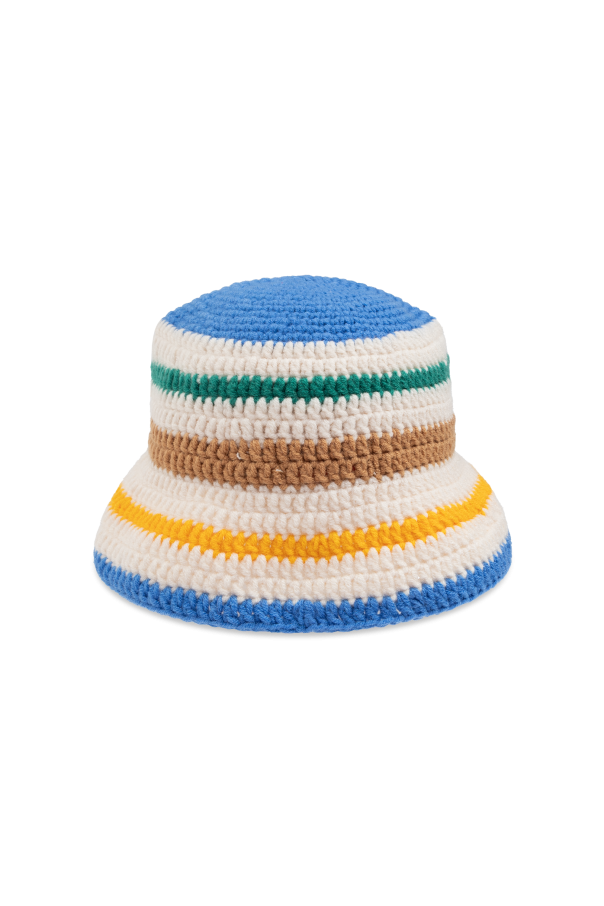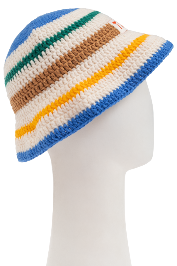 Introducing the Logo Hat from Tiny Cottons, a distinguished piece from our exclusive children\'s collection. Crafted with meticulous attention to detail, this bucket hat boasts a sophisticated yet playful design, featuring multicolored horizontal stripes in blue, green, brown, yellow, and white hues. The textured knit material offers a luxurious feel, perfect for adding a touch of elegance to any child\'s wardrobe. Highlighting its unique charm is an eye-catching orange patch adorned with the word \"TINY,\" serving as a hallmark of identity and style. Designed with a joyful and summery aesthetic, this hat is an ideal accessory for the young fashion aficionados, offering both function and flair. Why Choose This Product? Expertly crafted from premium cotton for superior comfort. Vibrant color palette enhances any outfit. Signature \"TINY\" patch for a distinctive touch. Perfectly sized for children, combining style and practicality.