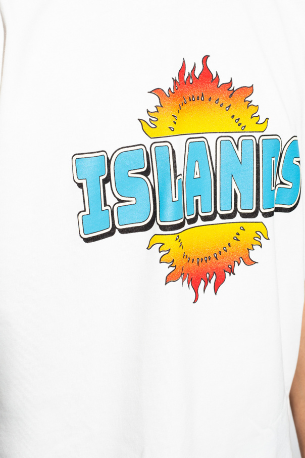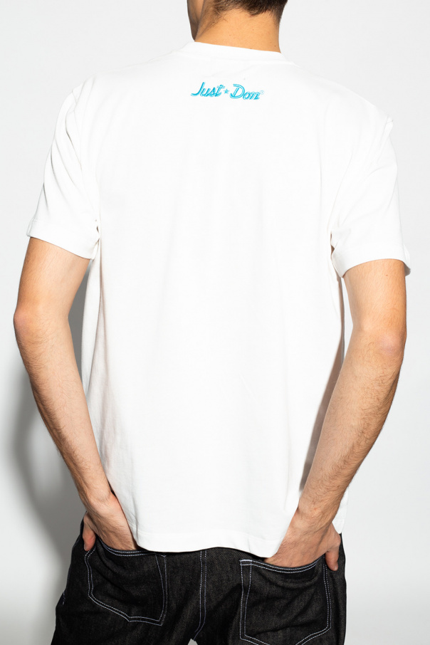 White T-shirt from Just Don. Made of cotton. Decorated with a multicolored print, this short sleeve design has a ribbed crew neck.