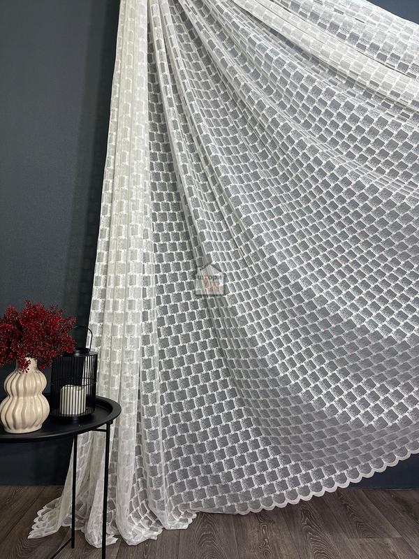 идеально подойдет для элегантных решений для окон в зале.Цена указана за готовый жаккардовый тюль соты высотой 2,7м с тесьмой для