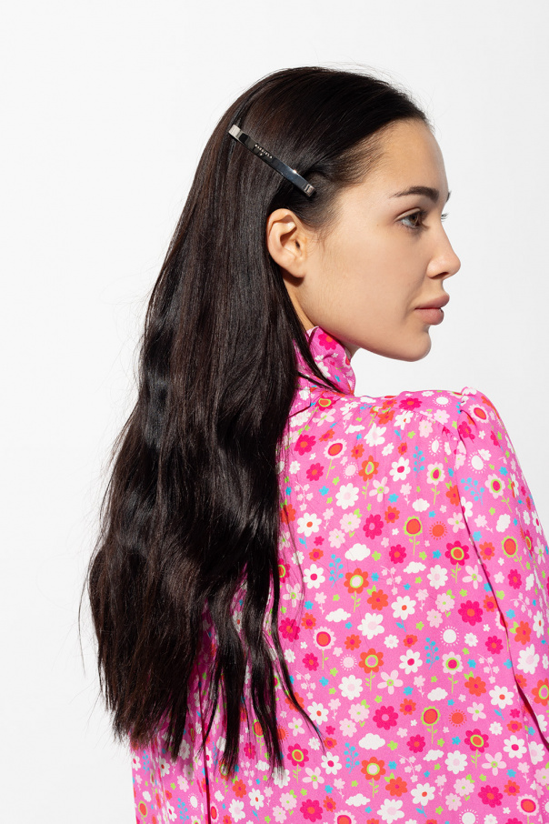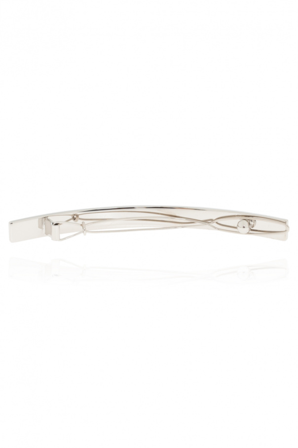 Silver-tone hair clip from MM6 Maison Margiela. Made of brass, this item is enriched by an embossed logo pattern.
