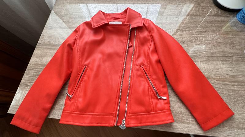 Осіння курточка- косуха яскравого червоного кольору . Склад: поліуретан, поліестер.