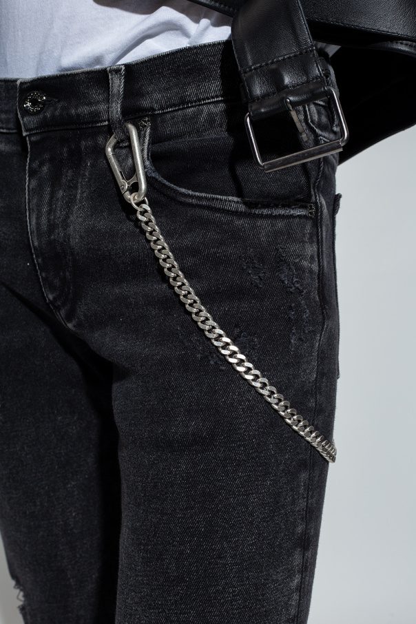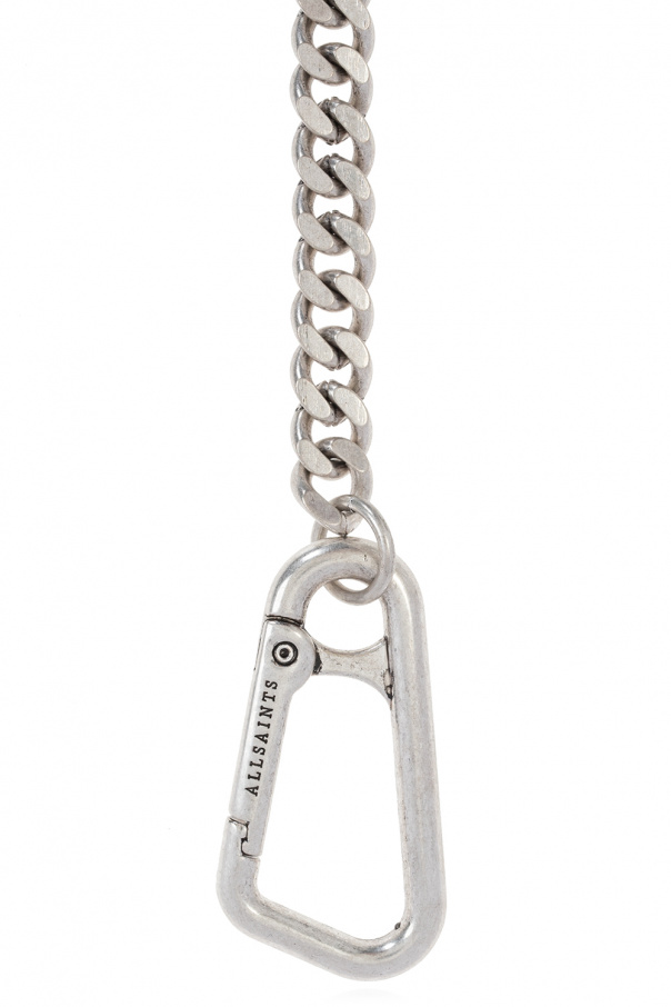 Silver-tone trouser chain from AllSaints. Made of brass, this item features two lobster clasps and decorative chain links.
